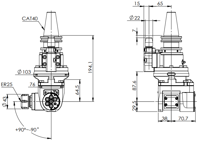 ◎ CAT40-ER25 Universal Angle Head (AHG Type)