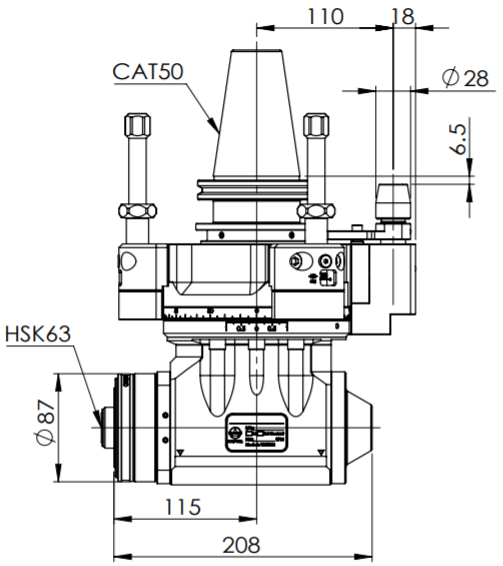 ◎ CAT50-HSK63 Multi-Block Angle Head-HSK (AHK Type)◎ Run-out:0.002 mm◎ Material:Alloy Steel◎ R.P.M.:Max. 6000 RPM◎ Torque:Max. 100 Nm◎ Drilling:Max. 24 mm◎ Tapping:Max. M18◎ Gear Ratio:1:1◎ Standard Accessory:Open End Wrench, L Type Wrench◎ Output Rotation:Rev ...了解更多
