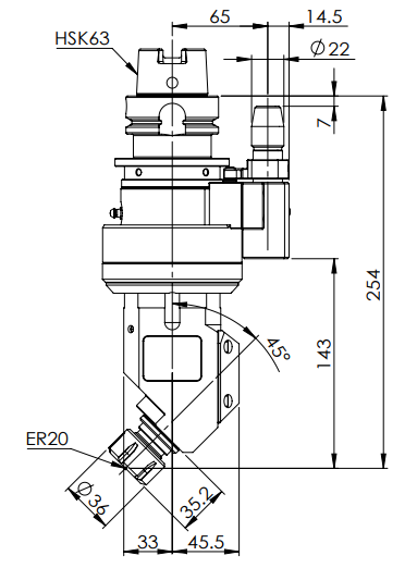 ◎?HSK63-ER20 45° Angle Head (AHD Type)