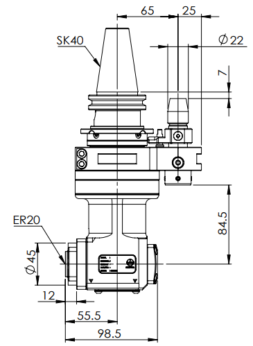 ◎?SK40-ER20 90° Aluminum Angle Head (AHM Type-Internal Nut)